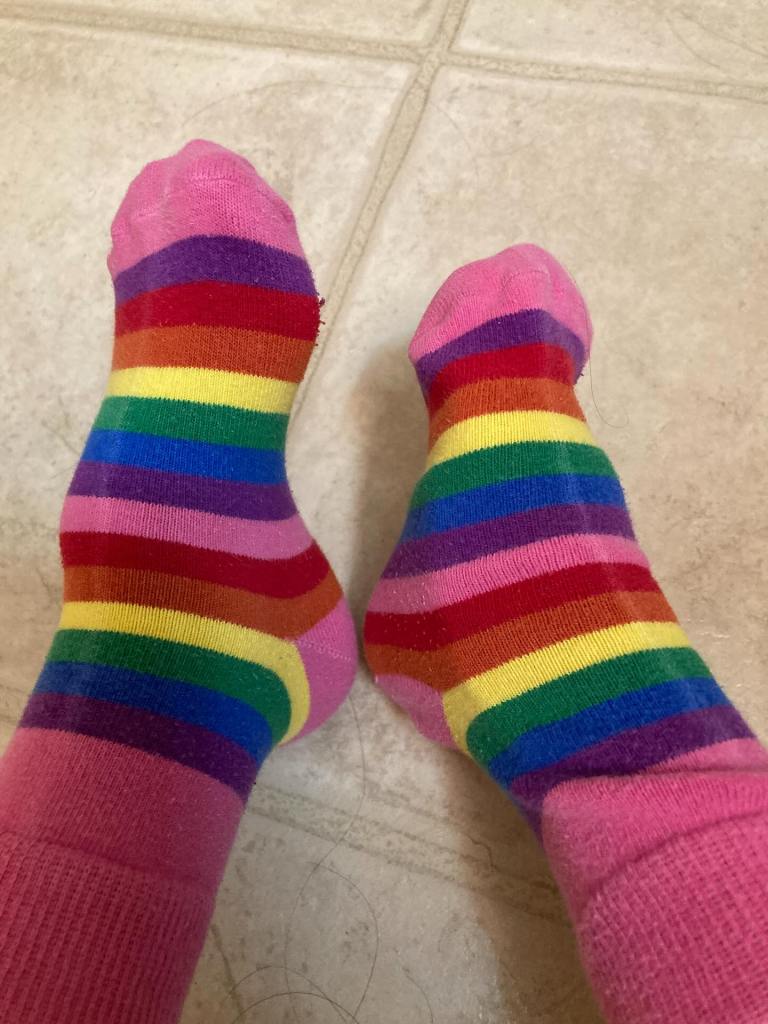 Also, having small feet has its benefits. My left foot is a child size 2, and my right foot is about half that size. So, I get to find and wear the cutest socks and shoes because I shop in the little girls section. Which works great because I love sparkly, rainbow, unicorn things!